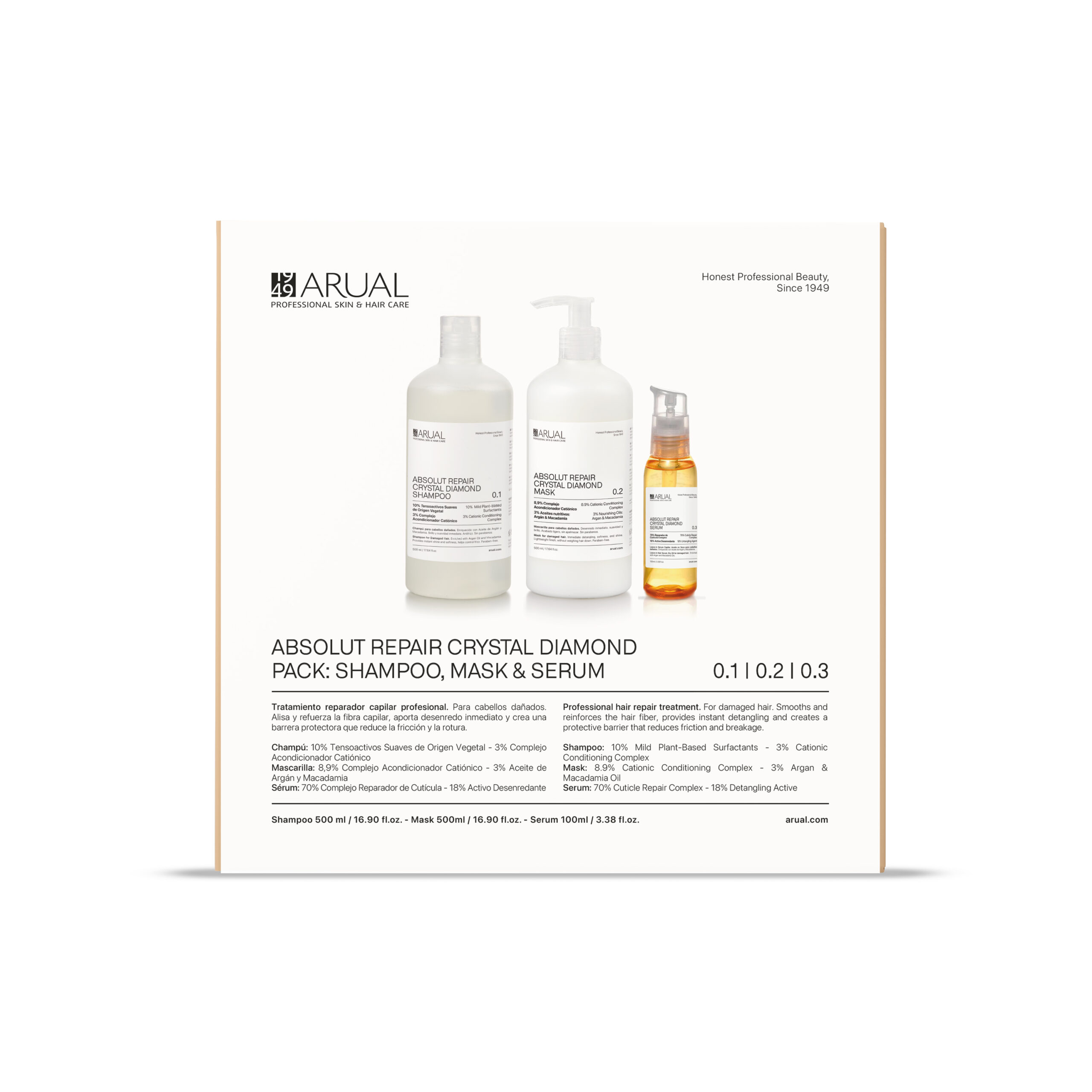 Champú: Aplicar sobre el cuero cabelludo y el cabello mojado. Masajear suavemente hasta formar una espuma cremosa. Aclarar con abundante agua y repetir si es necesario. Para mejores resultados, complementar con el Acondicionador Crystal Diamond.