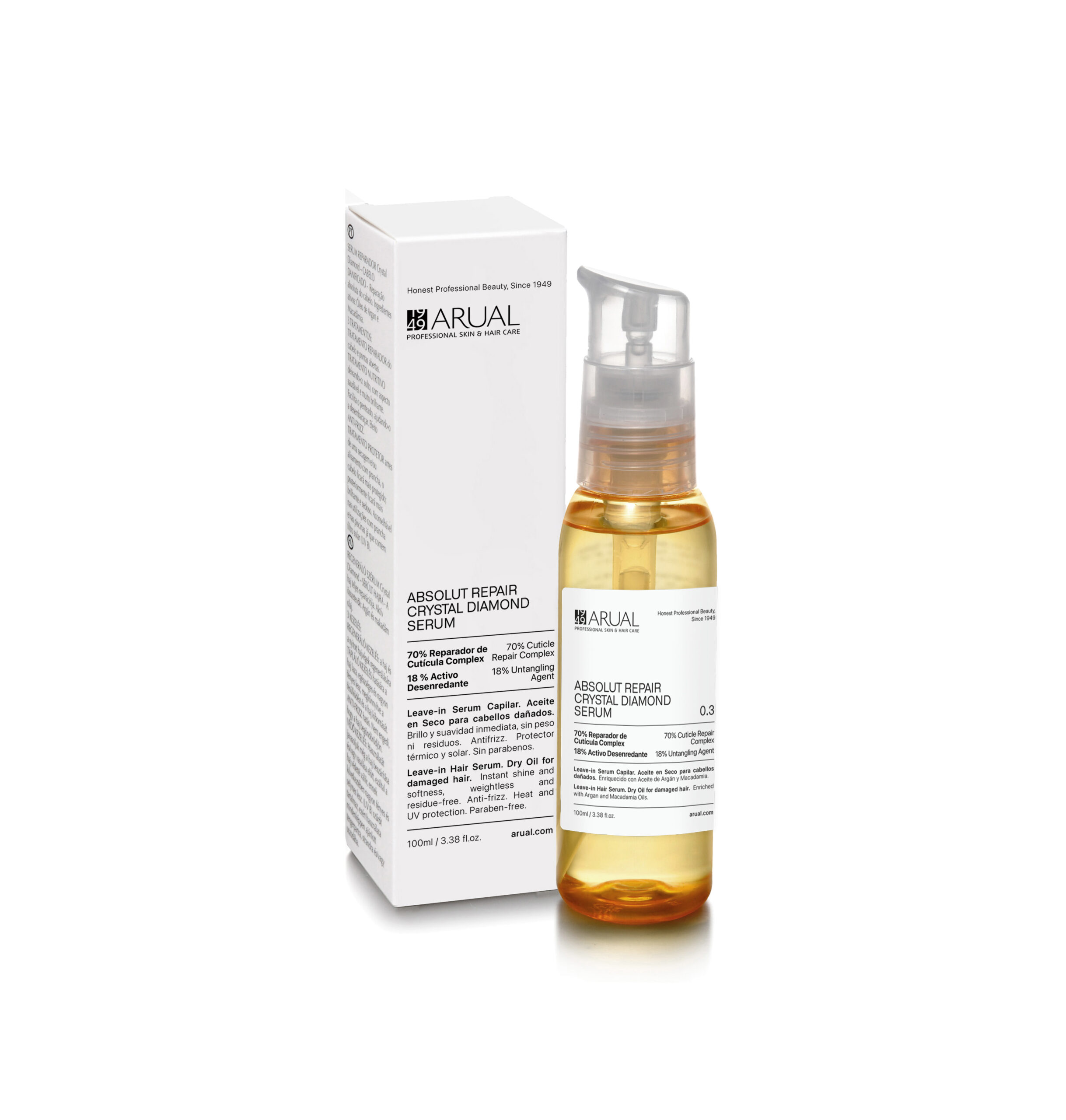 Dry oil that detangles, repairs, and protects the hair. Provides instant shine, deep repair, and lasting protection in a single gesture.