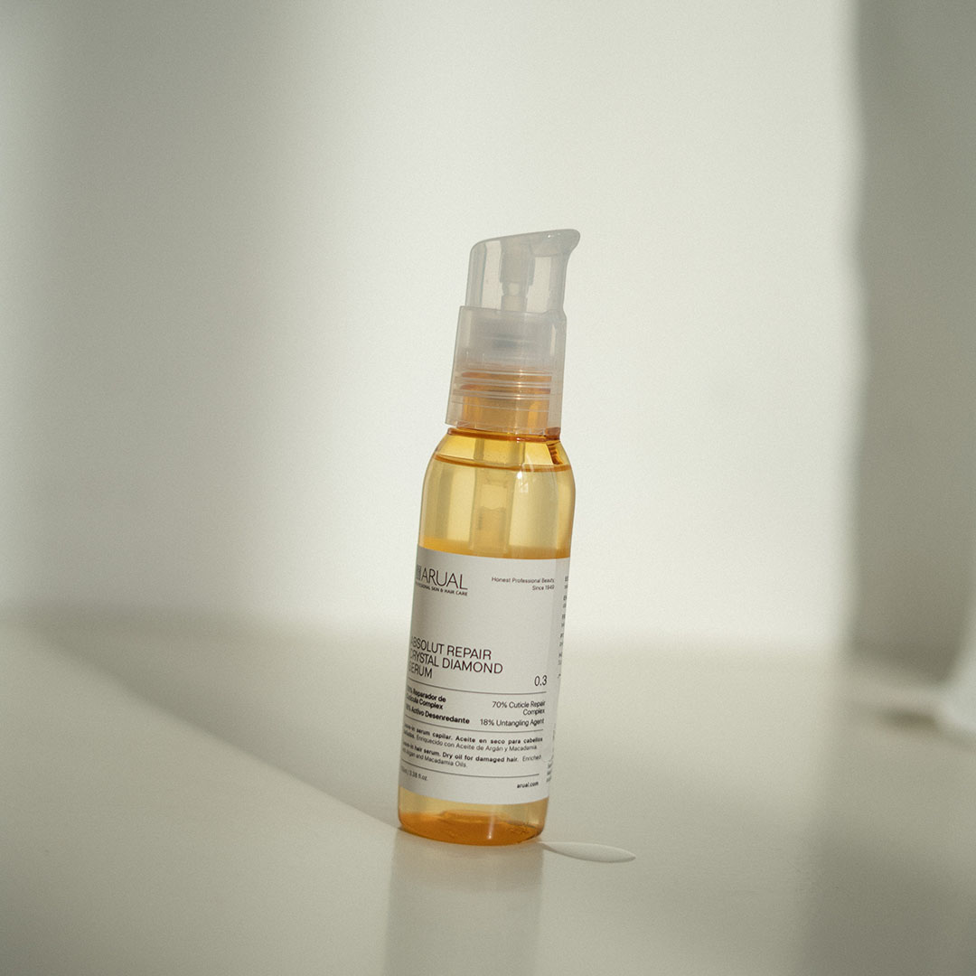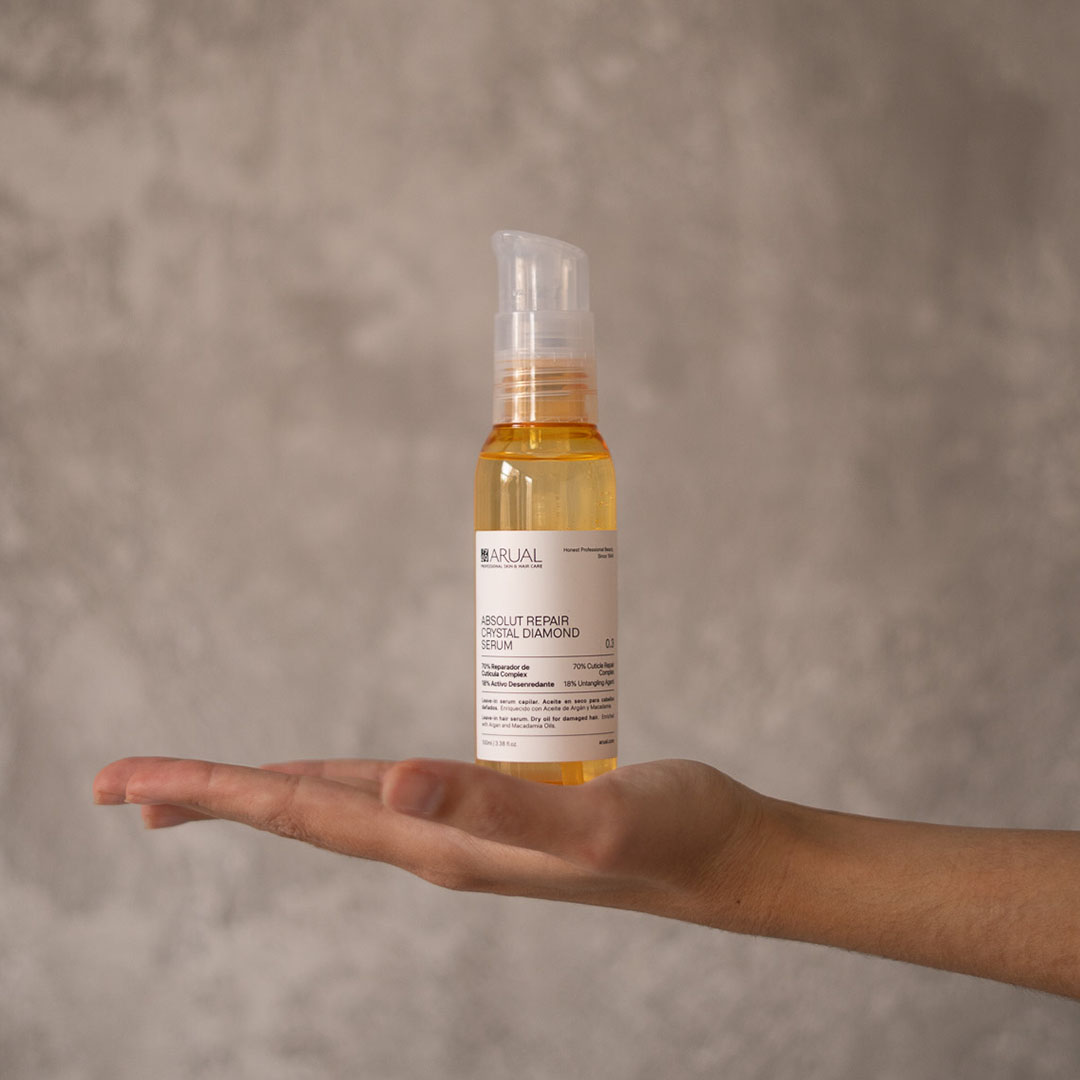 Crystal Diamond Serum is a highly concentrated hair treatment that repairs, protects, and enhances hair’s shine. Its formula combines 70% cuticle repair complex with 18% detangling active, achieving an immediate action on the hair fiber without weighing it down or leaving residue.
