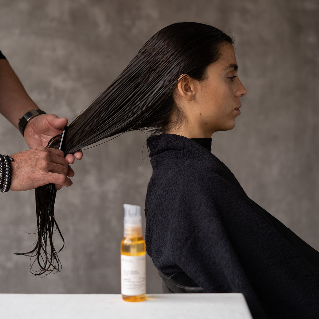 Cuticle repair complex 70%: combines high-purity silicones with natural oils that seal the cuticle, reduce porosity, and improve hair’s resistance to heat and external agents.